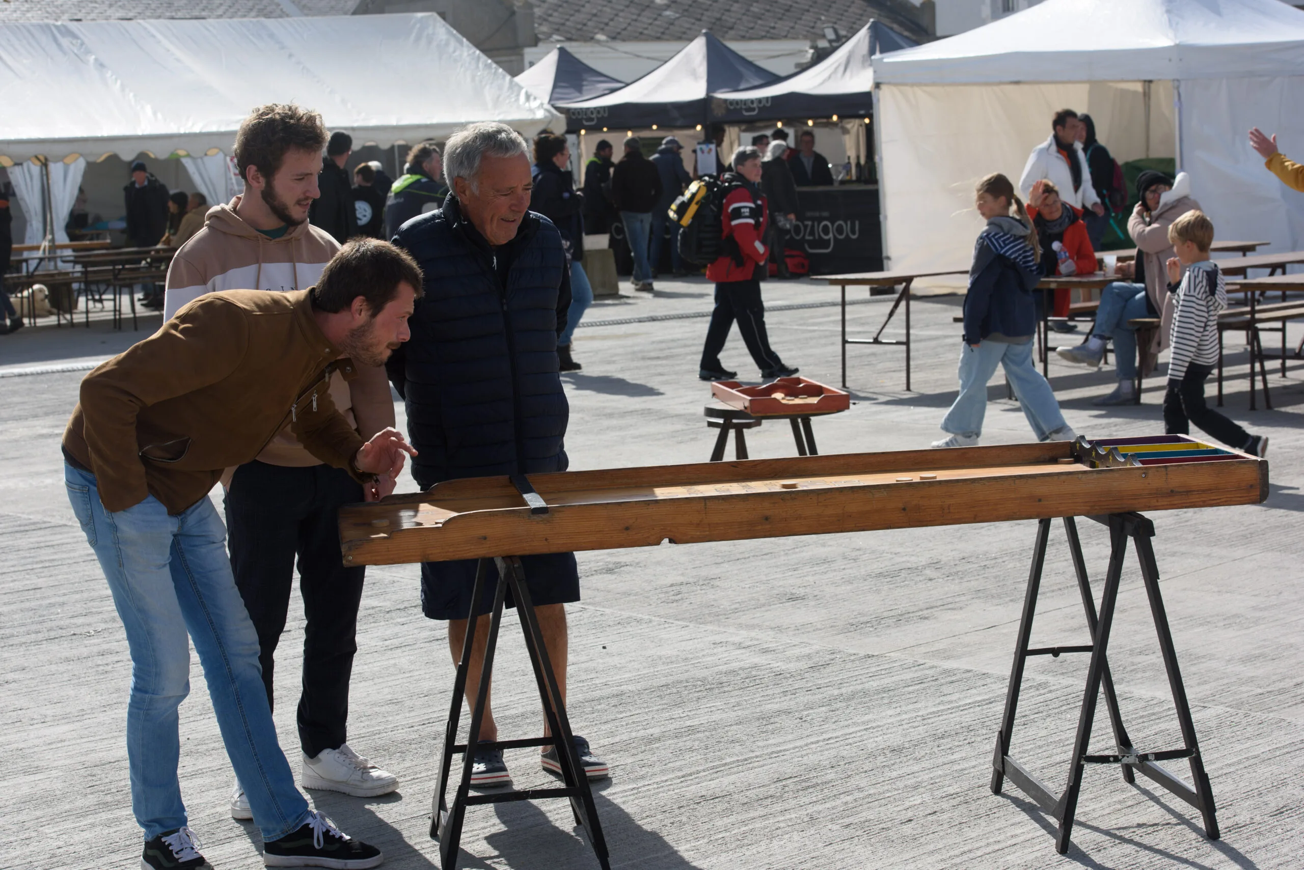 Mad Eo jeu, c’est comme une salade de fruits, un mélange de couleurs, de textures, de jus… Un espace ludique pluriel où petits et grands naviguent entre les jeux, tous uniques et réalisés par à la main. Un espace de partage où, aux détours de jeux traditionnels surdimensionnés, se mêlent plaisirs, concentration, rires, scores et records…