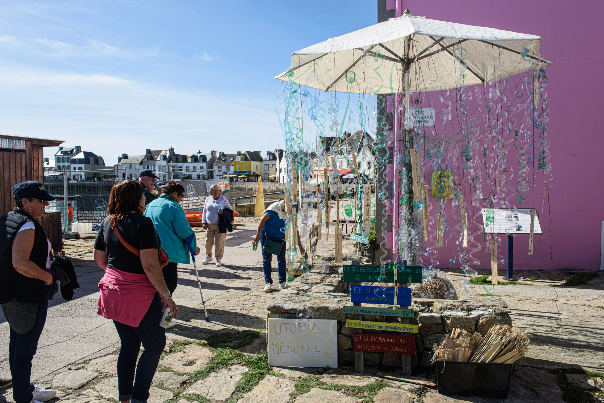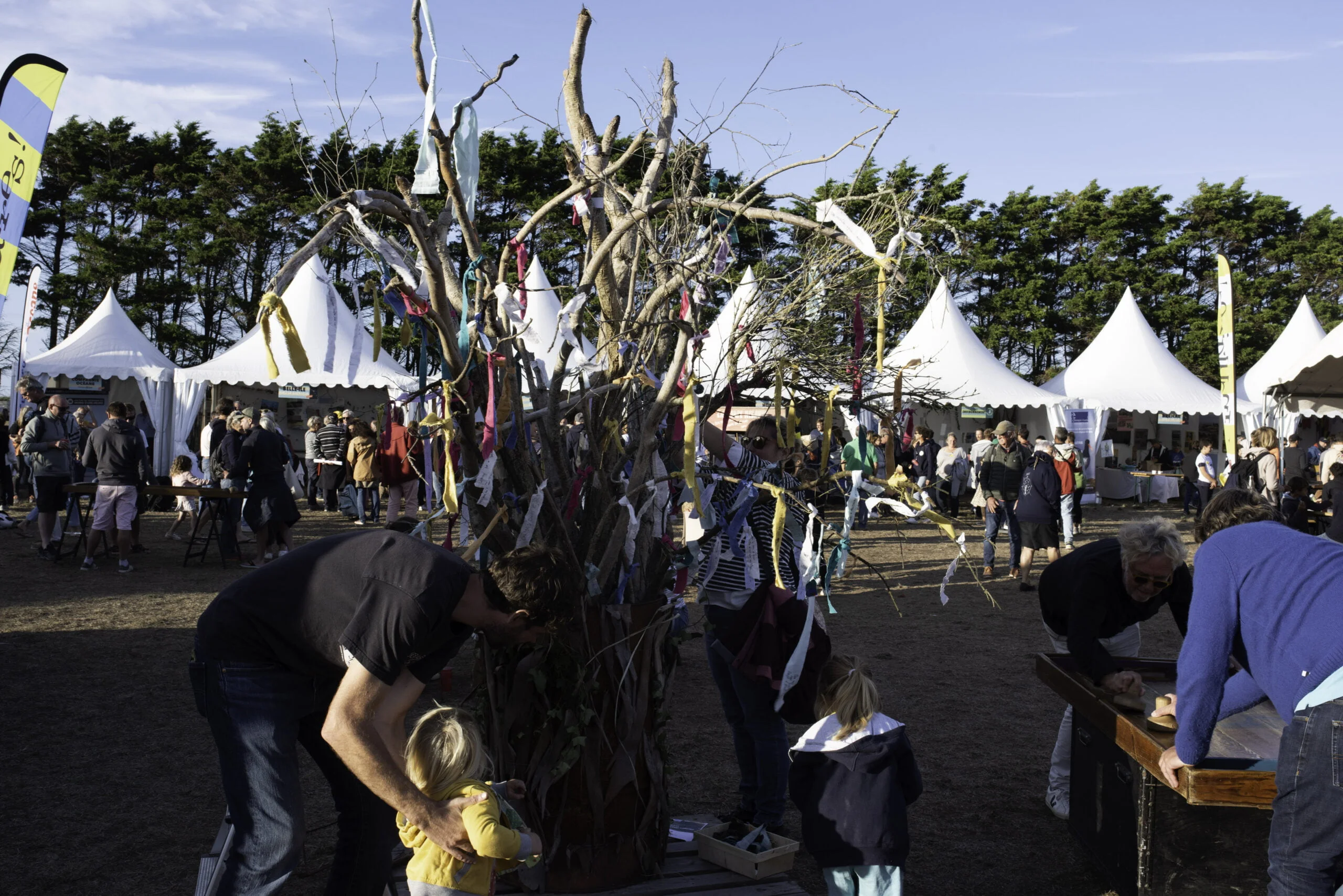 Depuis la 9ème édition des Insulaires à l’Île-aux-Moines, les festivaliers créent ensemble une grande oeuvre commune, symbole de l’amitié inter-îles.